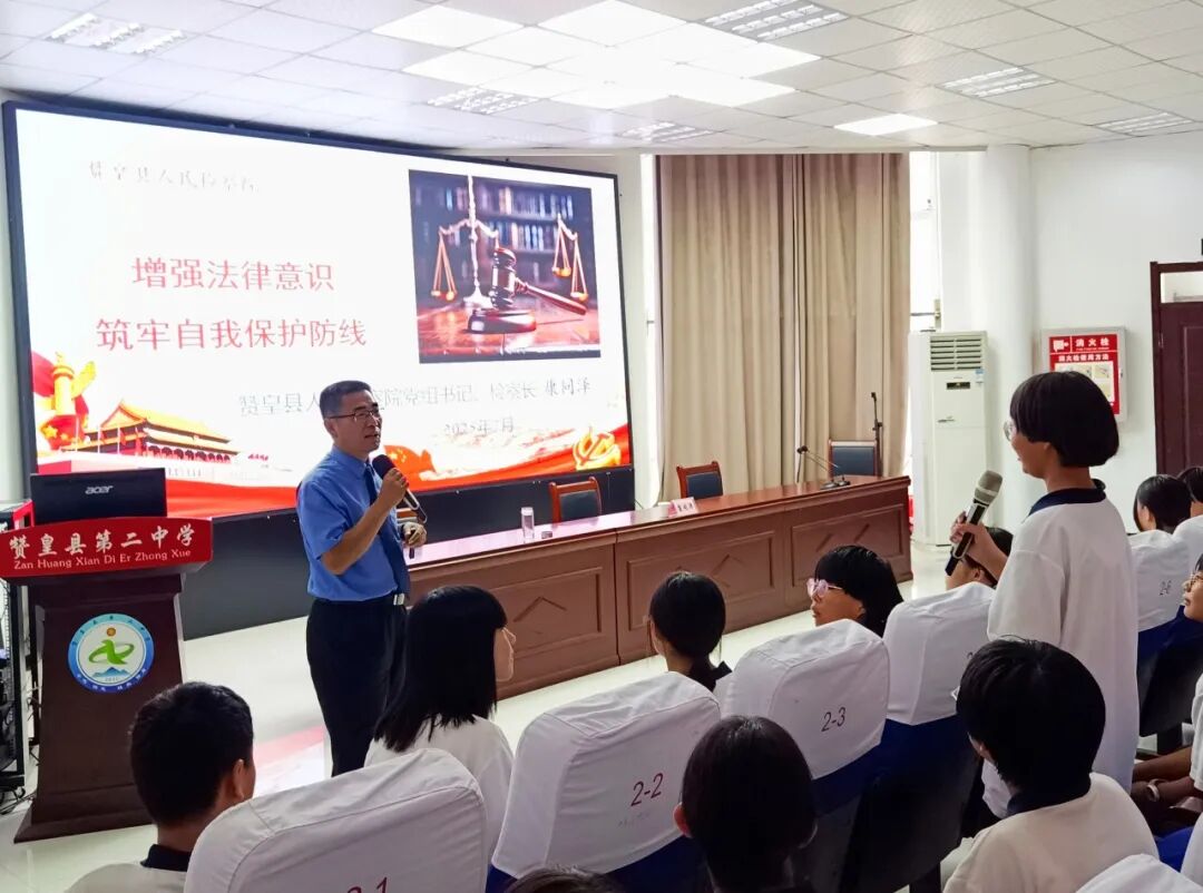 随后,康同泽检察长利用精心准备的PPT,结合生动的案例和图片,详细讲解了检察院的职能。同学们通过直观的展示,对检察院在维护社会公平正义、保护未成年人权益等方面的工作有了更清晰的认识。
