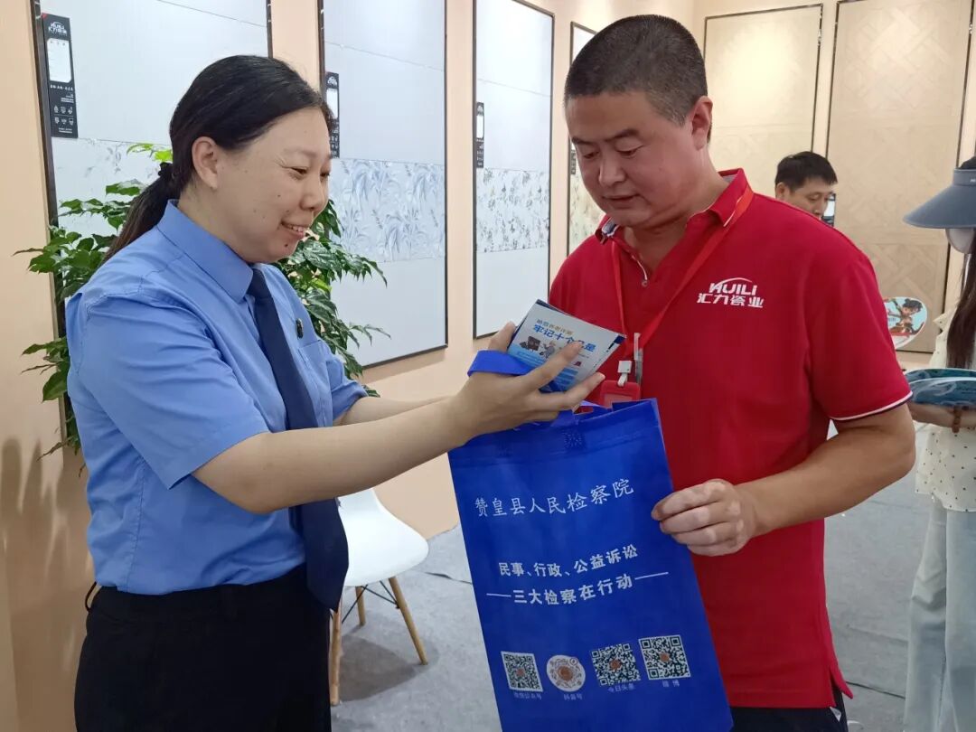 活动现场,干警们精准聚焦不同群体的法律需求,送上 “定制化” 法治服务:面对忙着洽谈合作的陶瓷商户,干警们主动上前,结合行业常见的经营风险,用 “案例 + 法条” 的方式解读《民法典》中合同签订、知识产权保护等重点内容,针对 “供货延迟违约”“货款拖欠追偿” 等商户高频咨询的问题,逐条梳理应对思路,提供可操作的法律风险防范建议,帮商户守住 “经营安全线”;而对前来逛展的市民,干警们则化身 “反诈宣传员”,通过发放图文手册、现场剖析典型案例,详细讲解电信诈骗、养老诈骗的常见套路,切实守护好 “钱袋子”。