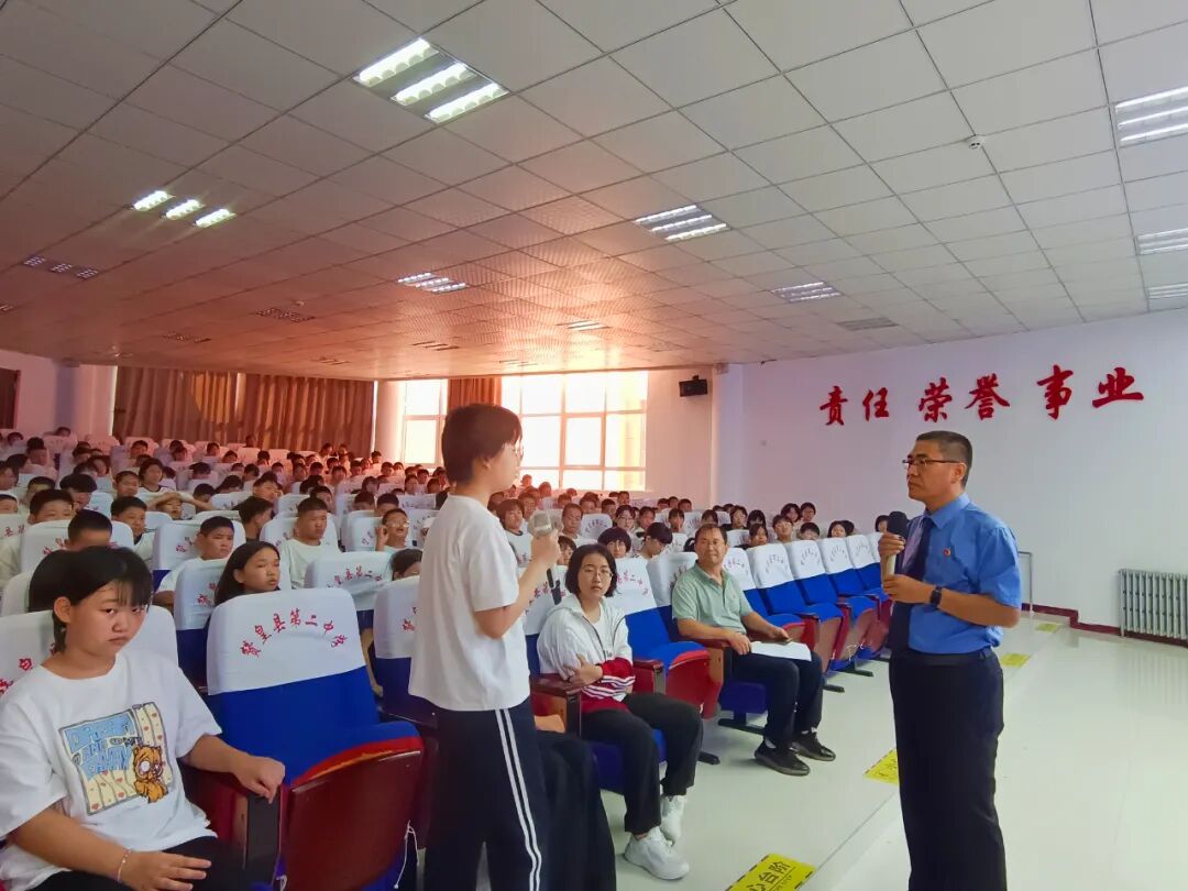 活动伊始,康同泽检察长巧妙打破传统宣讲的严肃桎梏,精心设计一系列贴近校园生活的互动环节。“同学们,假期都进行了哪些活动?”“浏览网络时发现不良信息,怎样处理才最稳妥?” 随着一个个与青少年日常紧密关联的问题接连抛出,课堂气氛瞬间被点燃。