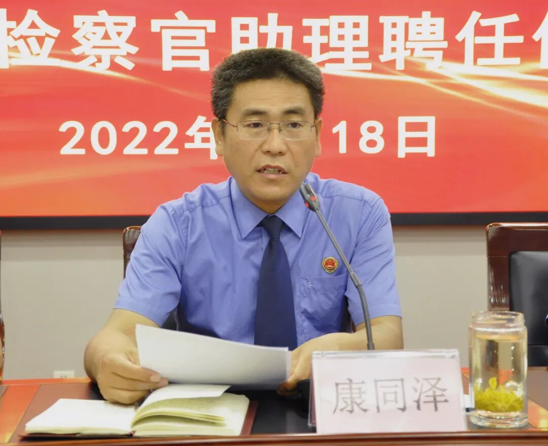 会议由党组成员、副检察长刘连鹏主持,会上,党组成员、政治部主任陈顺利与大家交流学习了高检院印发的《行政专业人员兼任检察官助理工作办法(试行)》,刘连鹏宣读了《关于聘任张政杰等同志为石家庄市赞皇县人民检察院特邀检察官助理的决定》,党组书记、检察长康同泽向受聘的特邀检察官助理颁发了聘书,并作总结讲话。