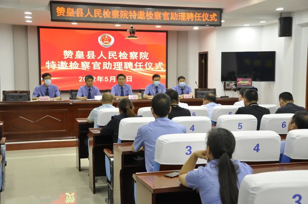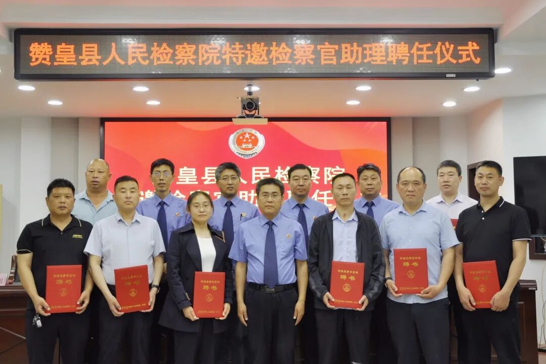 为全面贯彻习近平法治思想,认真落实最高人民检察院关于行政机关专业人员兼任检察官助理工作部署,深化执法司法协作配合,借助“外脑”提升办案质效,5月18日,赞皇县人民检察院举行首批特邀检察官助理聘任仪式,特聘请赞皇县自然资源和规划局、住房和城乡建设局、市场监督管理局、中国农业银行赞皇县支行、县医院、赞皇县税务局等相关专业领域的11名业务骨干兼任检察官助理。