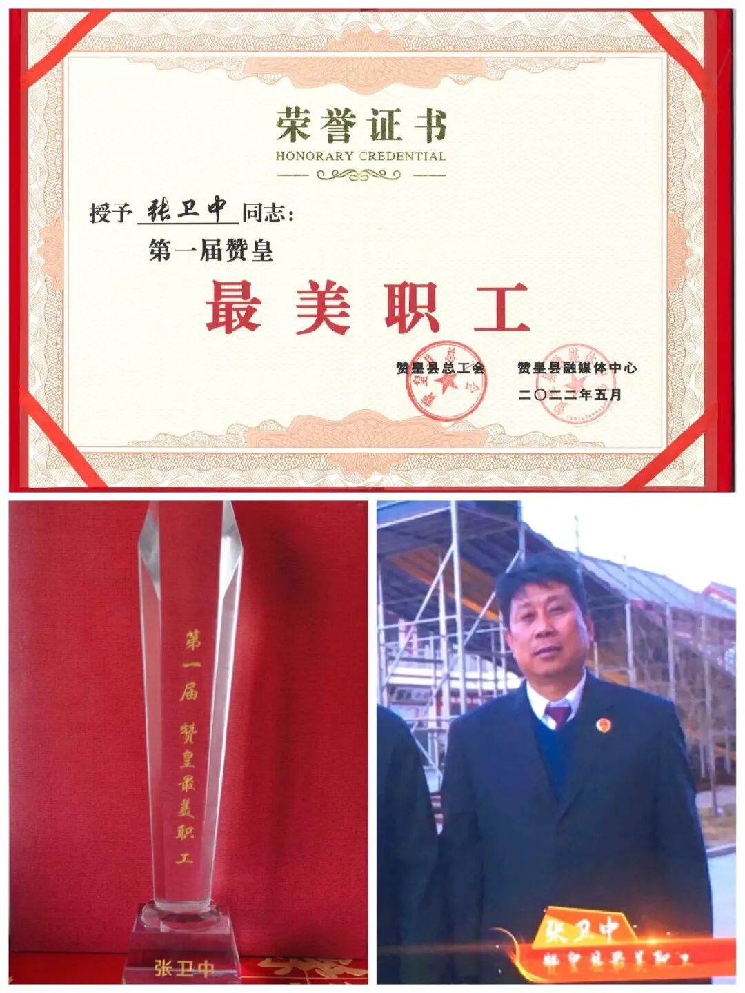 5月20日,赞皇县委组织部、县总工会、县人力资源和社会保障局、县融媒体中心主办的赞皇县第一届“十大工匠 最美职工”命名评选活动中,我院张卫中同志被评为“最美职工”称号。