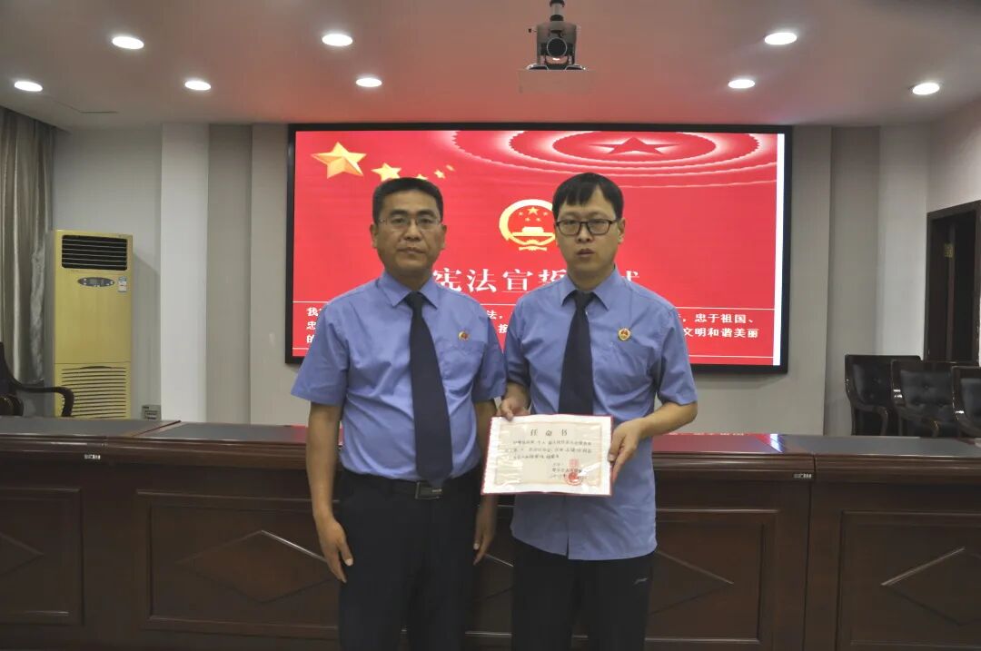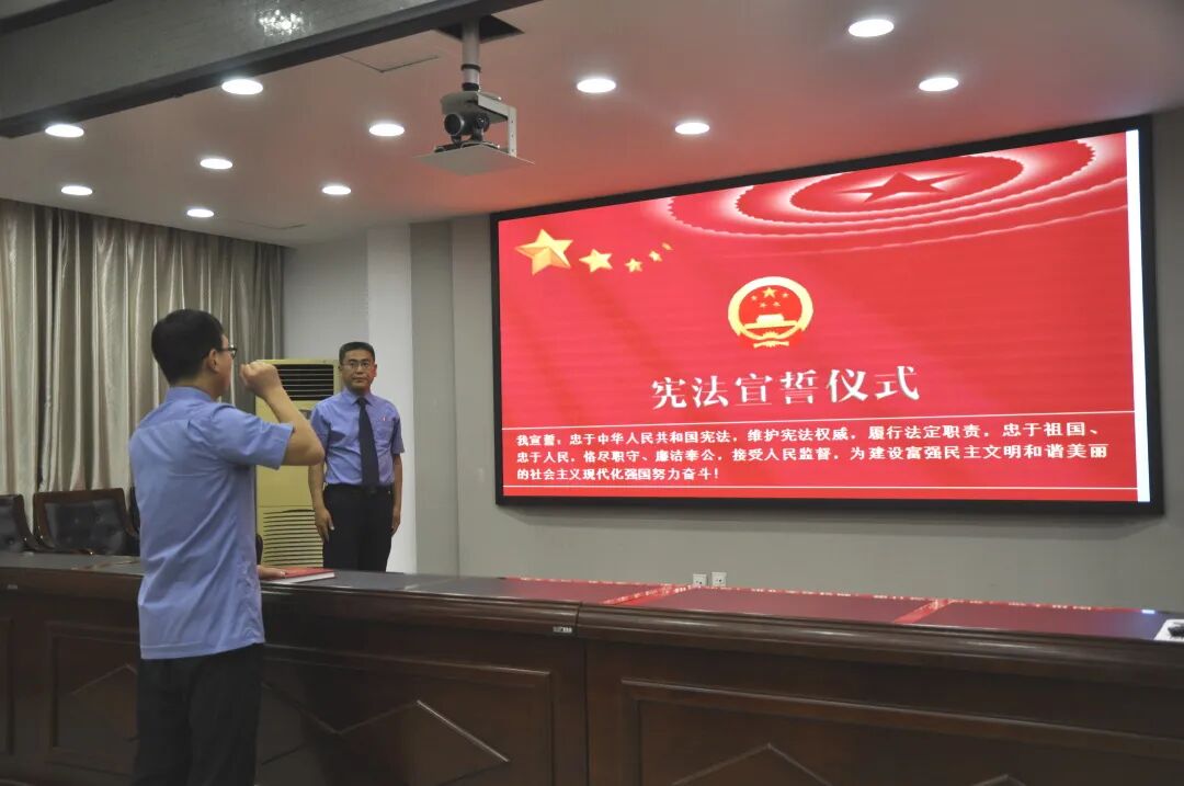 5月24日,赞皇县检察院举行庄重的新任命检察员宪法宣誓仪式,党组书记、检察长康同泽为新任检察员颁发任命书并监誓。