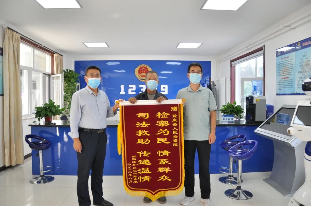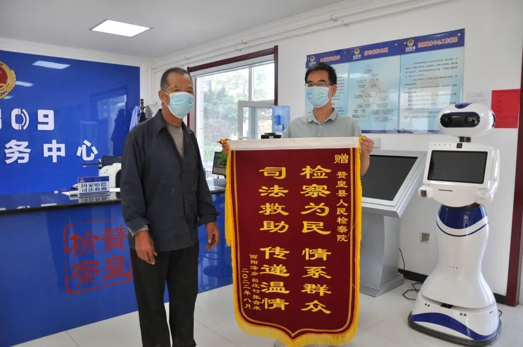 近日,张某来在侄子的陪同下,拿着一面绣有“检察为民情系群众,司法救助传递温情”的锦旗来到赞皇县检察院12309检察服务中心,要亲自将锦旗交到承办人手上,并激动的说:“真没有想到,你们通过国家司法救助帮我挽回损失,真是太感谢你们了!”。