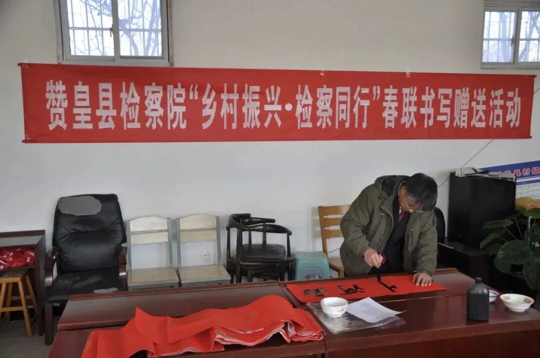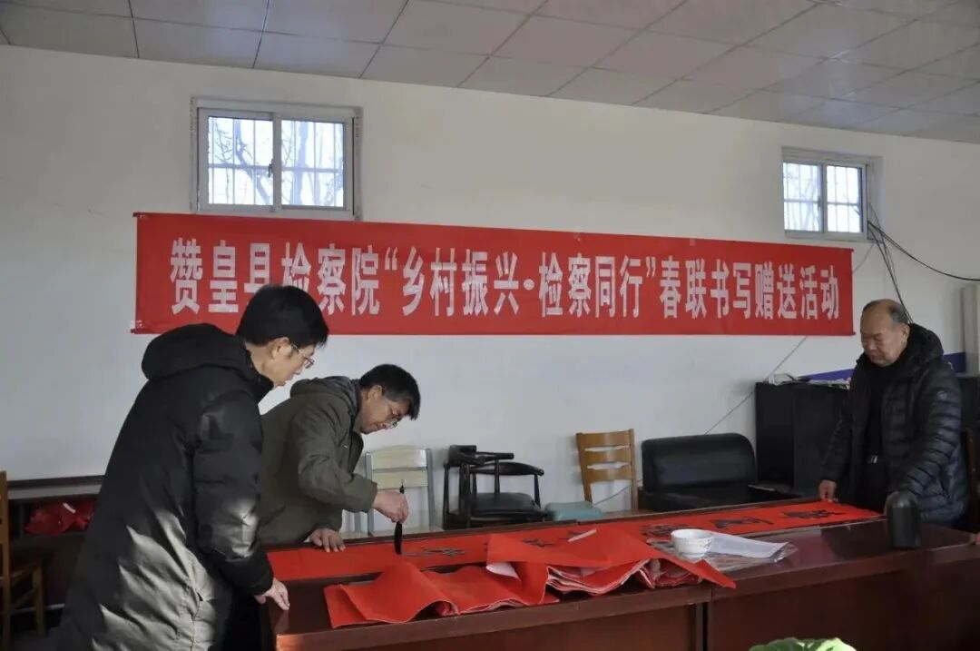 张灯结彩辞旧岁,挥毫泼墨迎新春。春节将至,为弘扬中华优秀传统文化,营造欢乐祥和的节日氛围,1月23日,赞皇县检察院党组成员、副检察长刘连鹏带队到对口帮扶村北清河村与县检察院驻村工作组开展“乡村振兴、检爱同行”春联赠送活动,为村民送去县检察院新春祝福。