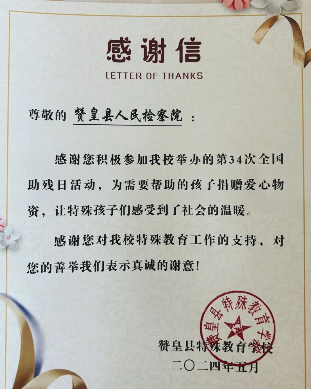 康同泽检察长表示, 2004年至今,二十多年来,赞皇县检察院五任检察长薪火相传,连续接力,始终坚持关怀照顾特教学校学生,不断完善帮扶措施,由最初捐款捐物的物质帮扶,到后来带孩子们外出参观开阔眼界的精神帮扶,再到解决生活出路的就业帮扶,以及教育孩子们增强明辨是非、自我保护能力的法治帮扶,多措并举,持续推进帮扶的力度、广度和深度,帮助一批又一批学生融入社会,成为有用之人、有为之才。社会各界的关心关爱让孩子们感受到温暖与关怀,赞皇县检察院将进一步完善多元化帮扶措施,推进同特教学校共建的深度和广度,形成保护合力,真正为孩子们撑起成长道路上的法治蓝天。